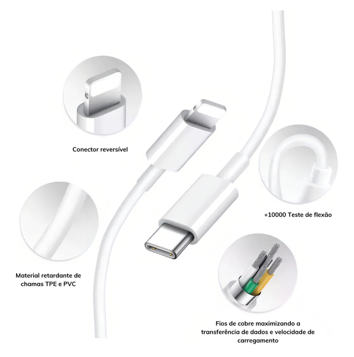 Para maior durabilidade, evite dobrar excessivamente o cabo e não utilize com carregadores turbo fora das especificações